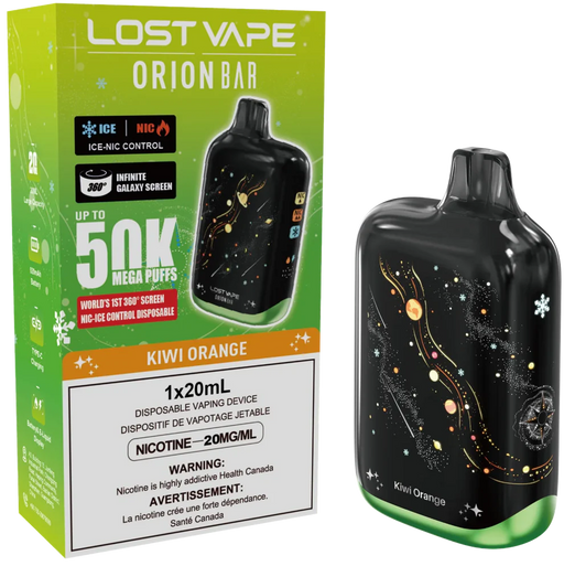 Kiwi Orange by Lost Vape Orion Bar 50K: Zesty and exhilarating, Kiwi Orange by Lost Vape Orion Bar 50K is a vibrant citrus sensation. The tart, tro...